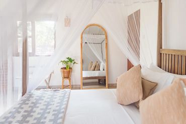 Lemon Villa offers two double bedroom both with on suite open air bathrooms, both bedrooms have Air Conditioning, the upper offer a balcony area with views of the Indian ocean. The downstairs bedroom has easy access to our inviting pool area.